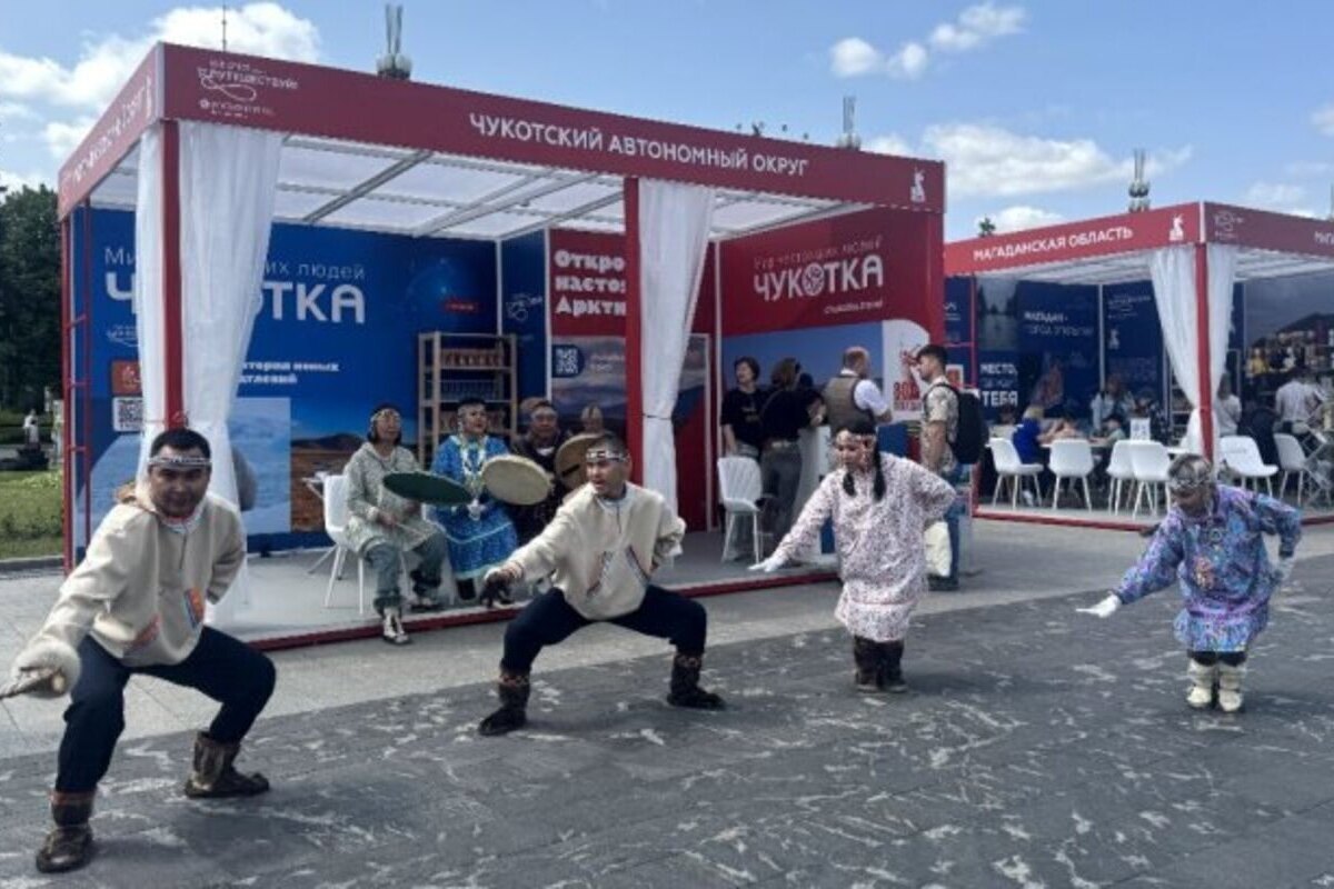 Чукотский автономный округ представлен стендом, где гостей знакомят с культурой и традициями коренных народов Севера, угощают блюдами из чукотских продуктов. В делегацию региона вошли сотрудники окружного правительства, Музейного Центра "Наследие Чукотки", региональные туроператоры, артисты фольклорно-эскимосского ансамбля "Атасикун", драмтеатра имени Олега Куваева, а также хранитель традиций и исполнительница Вероника Ушолик.