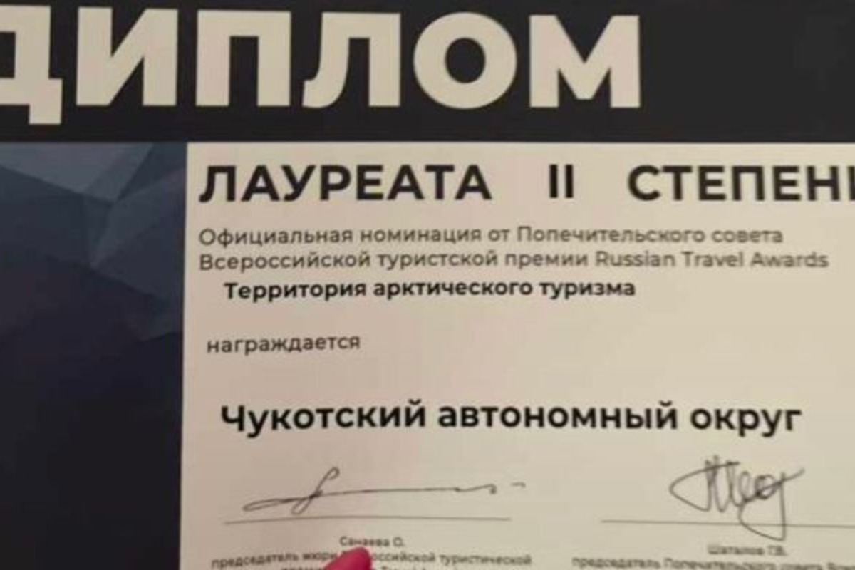 Премия "Russian Travel Awards" досталась Чукотскому АО. Округ получил второе место в номинации "Территория арктического туризма", сообщает ИА "Чукотка".