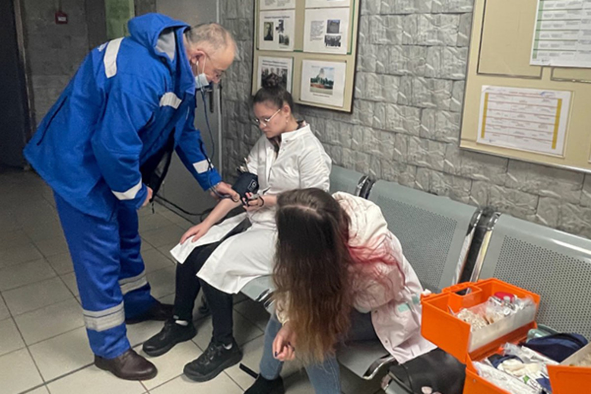 Во время осмотра несколько человек пожаловались на боли в животе и другие симптомы отравления. Медики решили госпитализировать в инфекционное отделение окружной больницы десять пострадавших. Ещё 57 студентов взяли под наблюдение. Роли "заболевших" исполнили будущие фельдшеры и медсёстры.