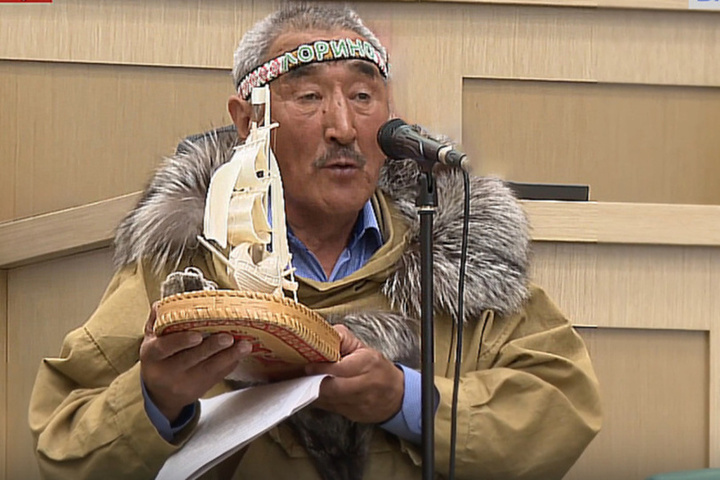 В конце своего выступления глава общины продемонстрировал изделие косторезной мастерской — судно, вырезанное из бивня моржа. Деньги от продажи таких работ ТСО "Лорино" также направляет на помощь фронту. Первый заместитель председателя Совета Федерации Андрей Яцкин поблагодарил почетного морзверобоя за выступление и отметил, что его предложения будут рассмотрены профильным комитетом.