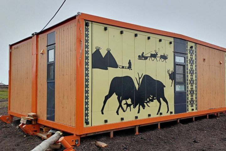 Общественную баню в труднодоступное село доставили по зимнику из Певека. Сооружение выполнено на базе двух модулей, общей площадью 57 кв. метров. Внутри — раздевалки, душевые кабины, сауна. Производитель украсил фасад орнаментом и изображениями из жизни оленеводов. Одновременно в бане может находиться не более десяти человек.