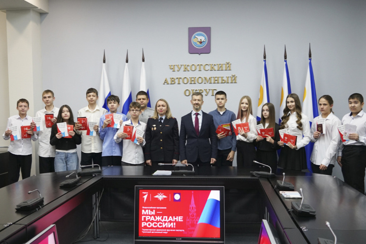 В Анадыре церемония состоялась в зале заседаний окружного правительства. В ней приняли участие 12 подростков, их родители, а также представители «Движения первых», регионального управления молодёжной политики и МВД. Губернатор Чукотского автономного округа Владислав Кузнецов обратился к юным гражданам с напутствием, пожелав им быть достойными и ответственными, а также уважать законы своей страны.